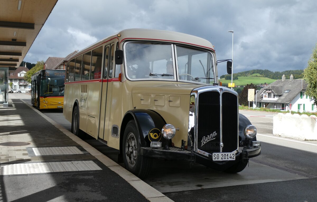 (281'013) - Steiner, Messen - SO 20'142 - Berna/Hess (ex Bärtschi, Biberen) am 5. Oktober 2025 beim Bahnhof Biglen
