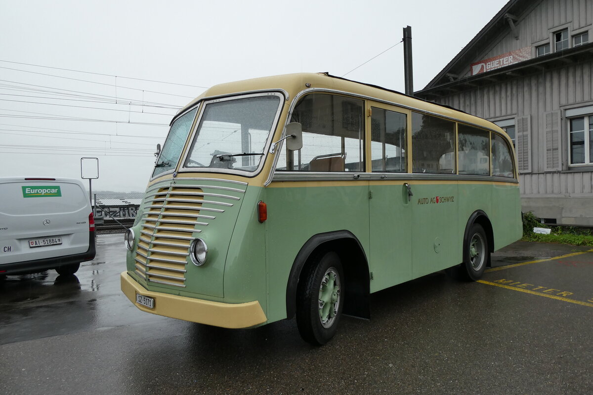(280'732) - AAGS Schwyz - Nr. 1/SZ 5171 - Saurer/Geser (ex Nr. 9; ex Nr. 17; ex Nr. 9; ex Nr. 1) am 27. September 2025 beim Bahnhof Wädenswil