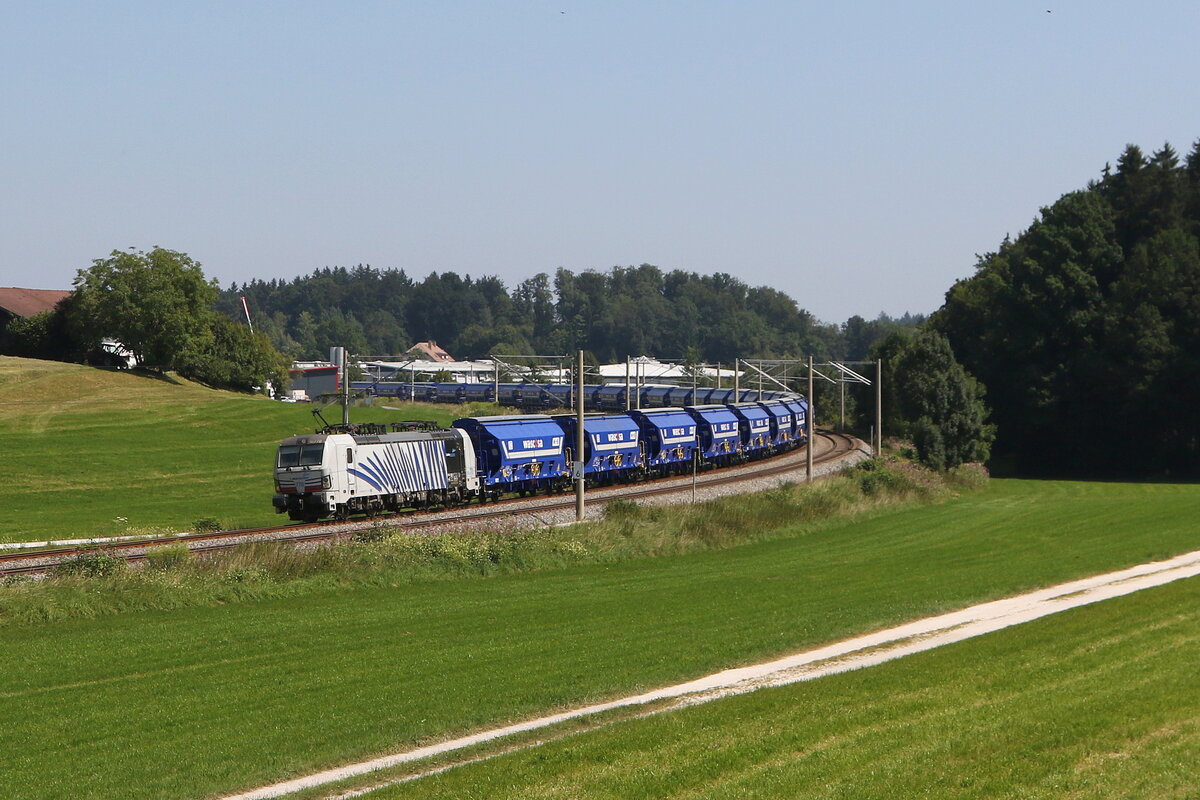 193 828 von "RETRACK" mit einem Kesselwagenzug am 3. Mai 2022 bei Assmannshausen am Rhein.