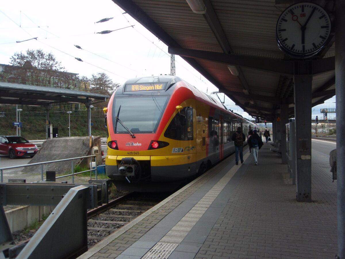 429 045 der Hessischen Landesbahn als RE 99 nach Siegen Hbf in Gießen. 04.04.2026