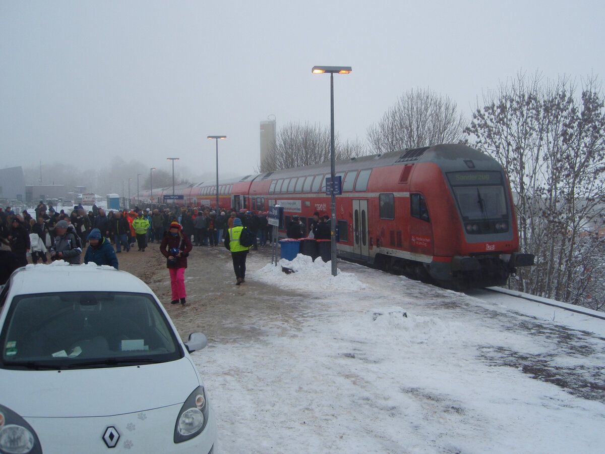 Ein Doppelstock Steuerwagen als RB 4 Kassel-Wilhelmshöhe - Brilon Wald in Willingen-Stryck. 31.01.2026