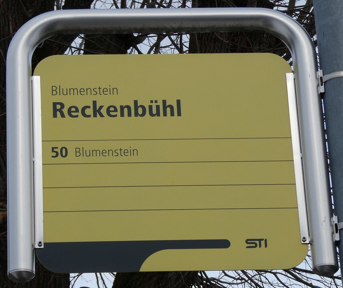 (270'138) - +P/STI-Haltestellenschild - Spiez, Spiezmoos - am 23. Dezember 2024