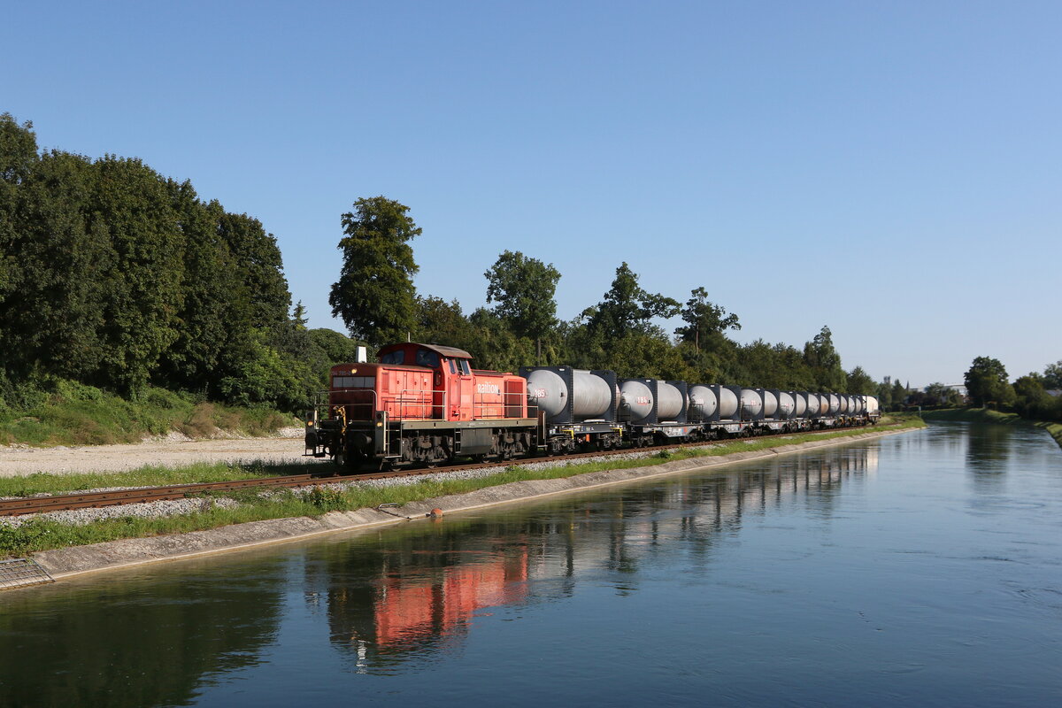 293 010-5 mit einem Bauzug am 14. Mai 2015 bei Harrbach am Main.